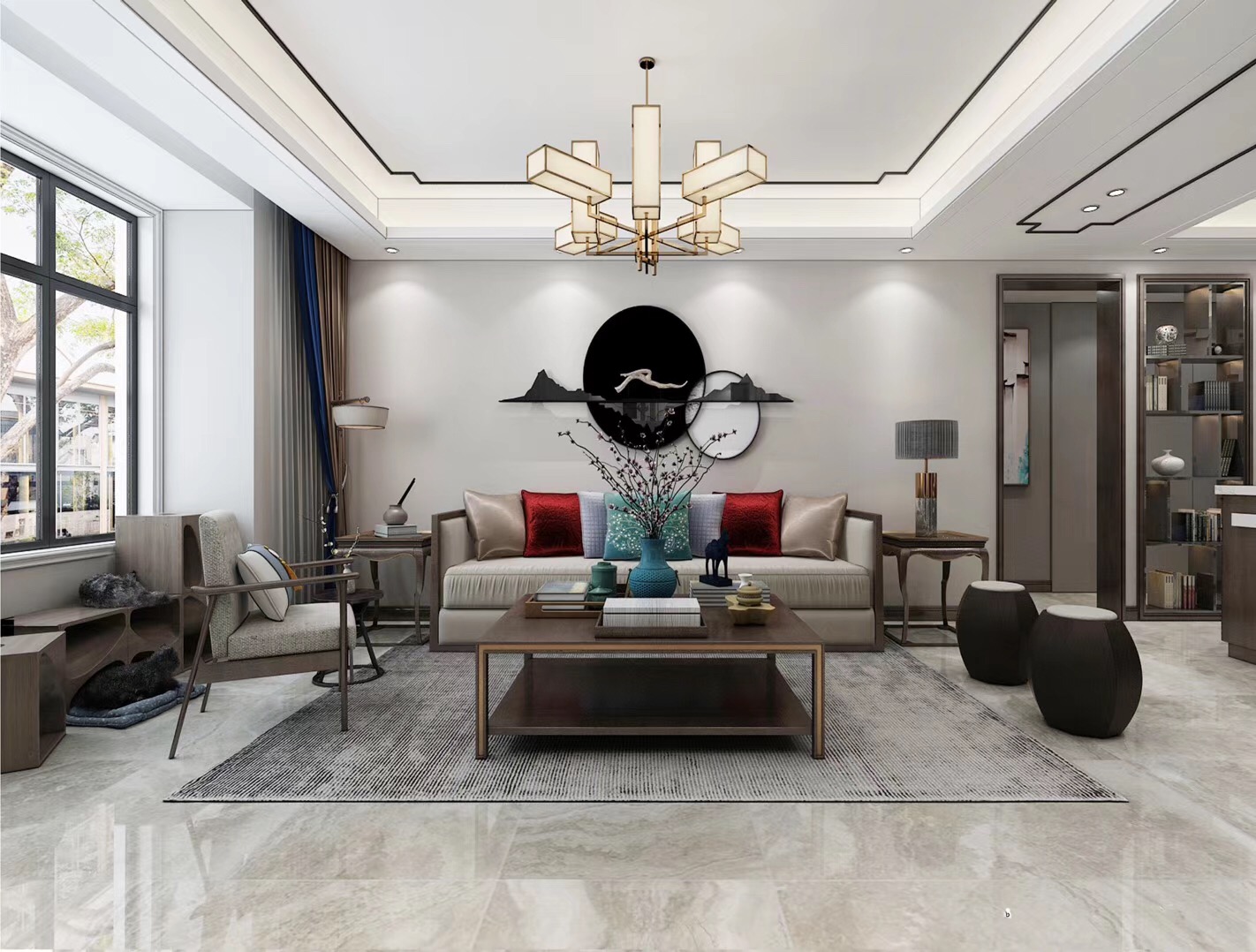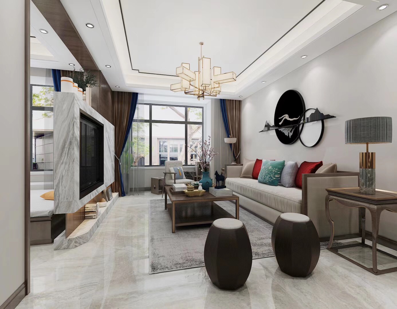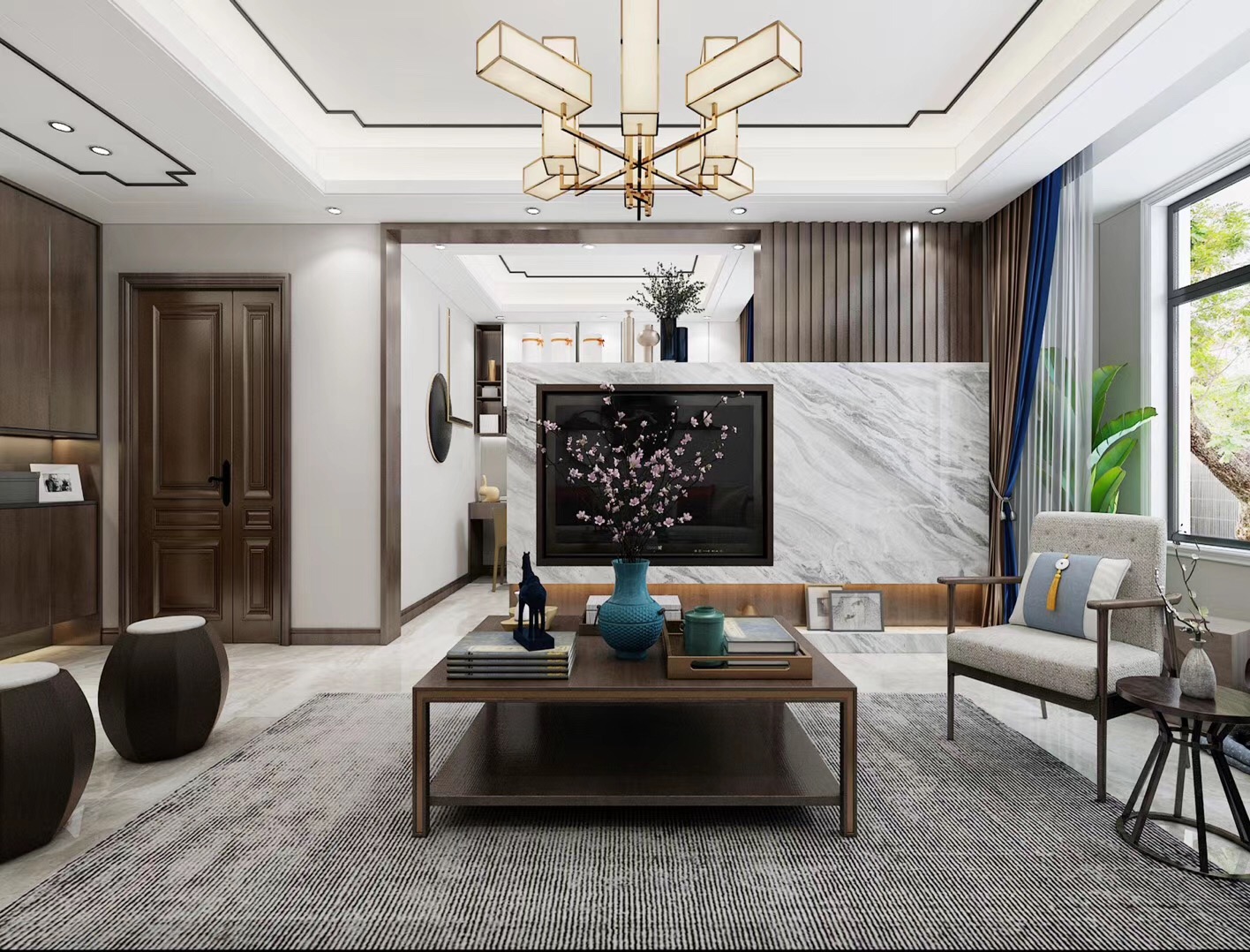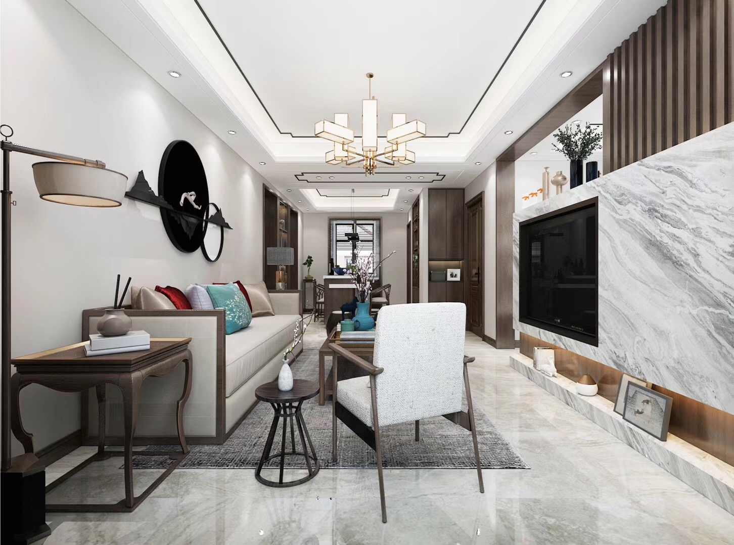大眾上河灣145平三室兩廳兩衛(wèi)新中式風格裝修,新中式風格,既能滿足父母對中國風的喜愛,又能滿足年輕人對現(xiàn)代感的需求。