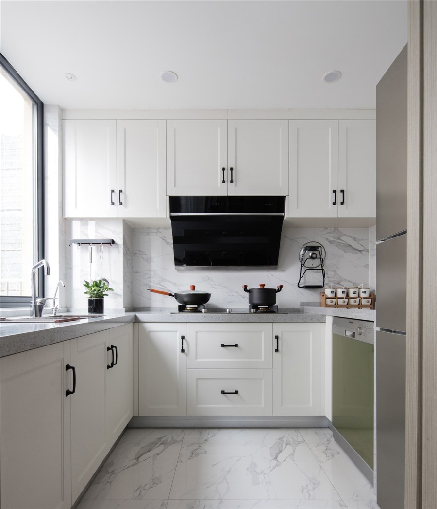廚房的門做了弱化設(shè)計(jì) 一推進(jìn)去即是 視野開闊的開放式廚房