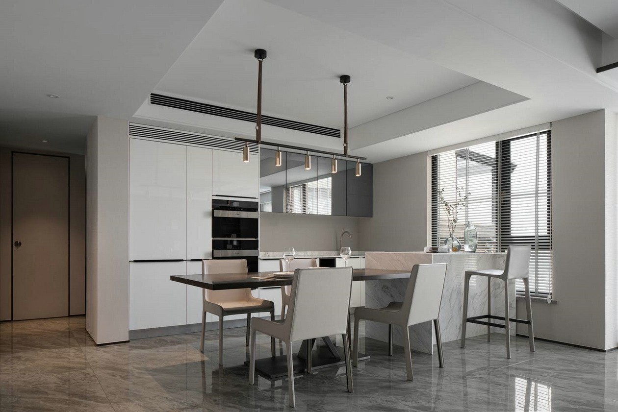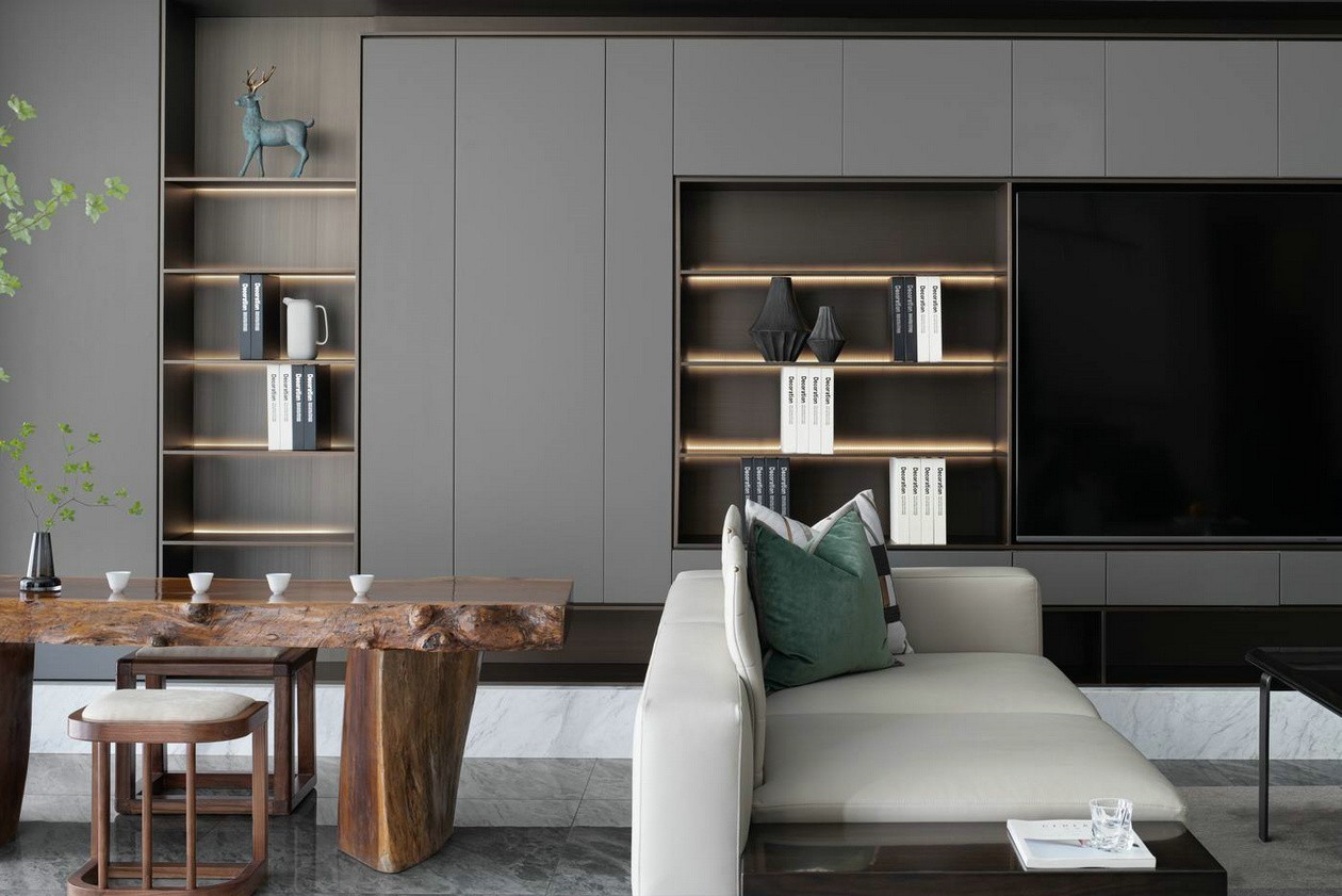 客廳茶室一體結(jié)合的做法,使空間體量有所增加,開(kāi)闊的空間體驗(yàn)也在無(wú)形中影響著業(yè)主的生活模式。