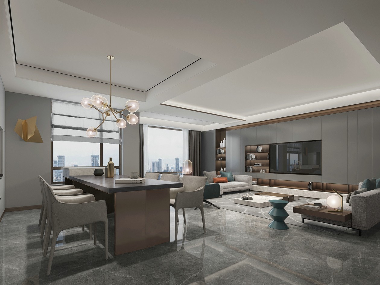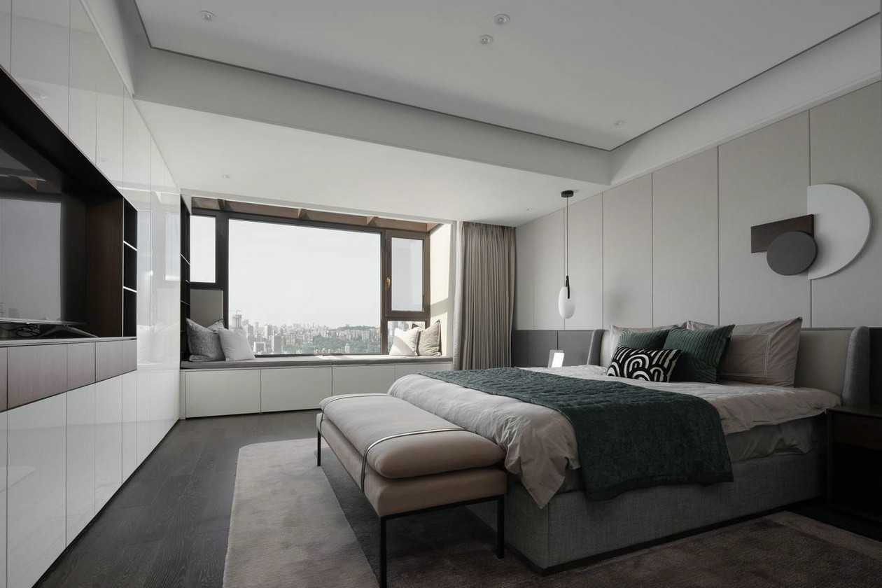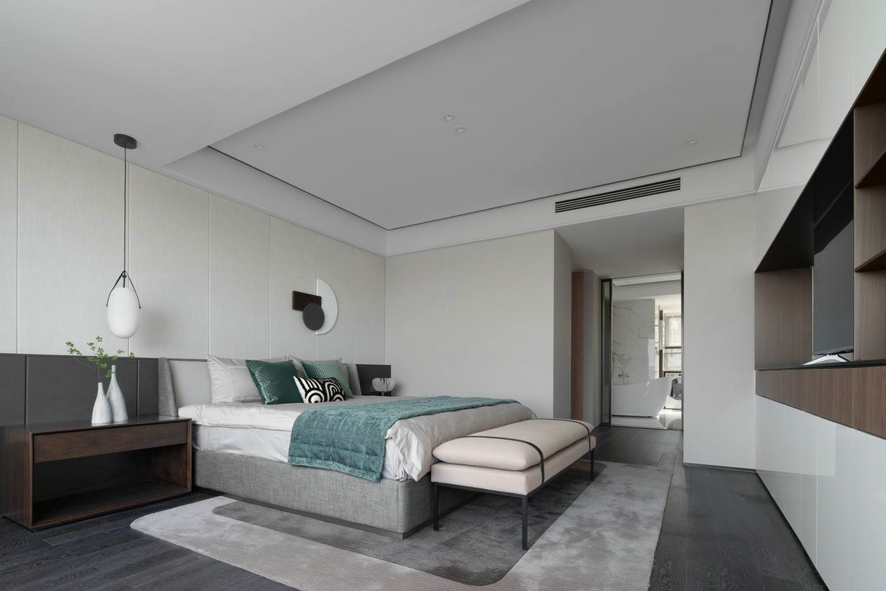 灰色的背景墻給人一種高級(jí)感,很大氣,不容易過(guò)時(shí)。